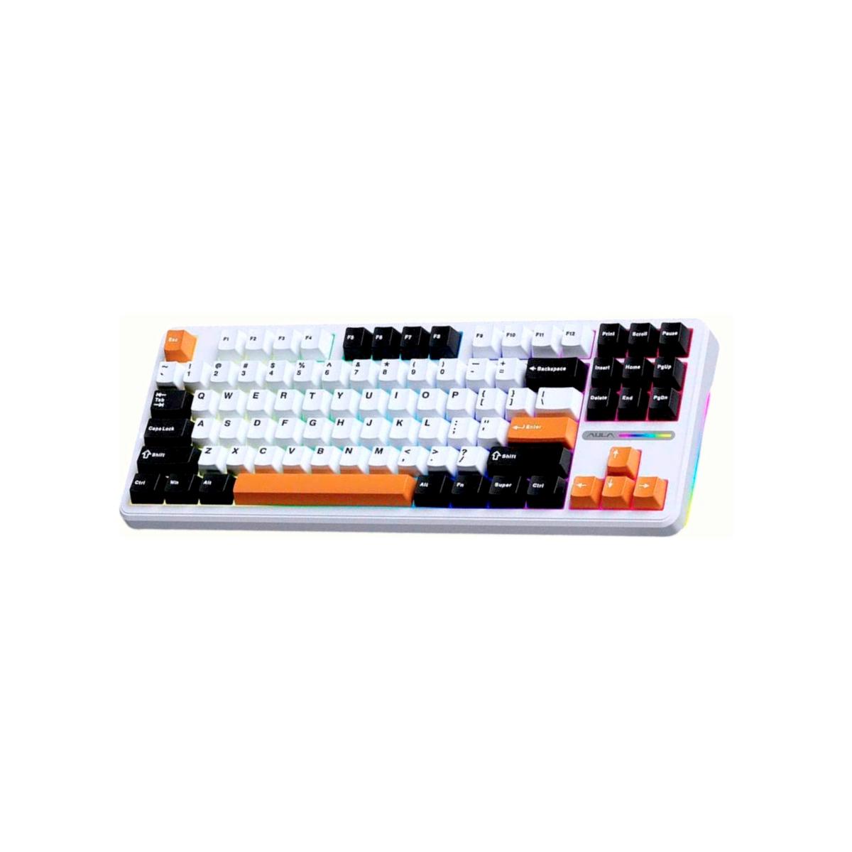 Layout 87 Teclas (Tenkeyless): O Epomaker Aula F87 adota o formato tenkeyless, o que significa que ele é mais compacto e não possui o teclado numérico, economizando espaço na mesa e proporcionando maior mobilidade. Essa característica é particularmente apreciada por quem usa o teclado para jogos, pois permite maior espaço para movimentos do mouse.